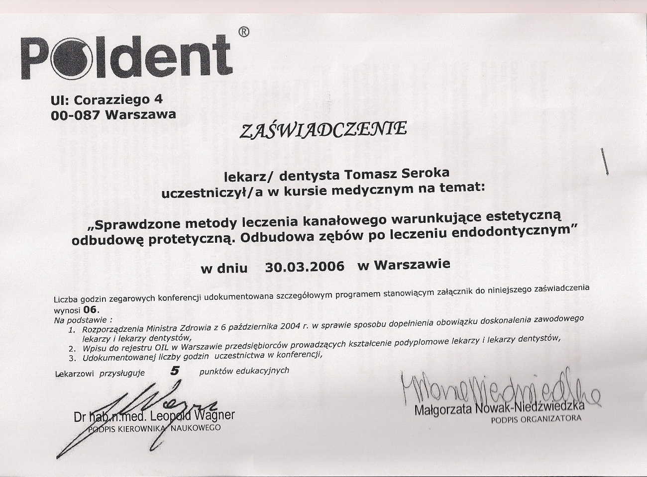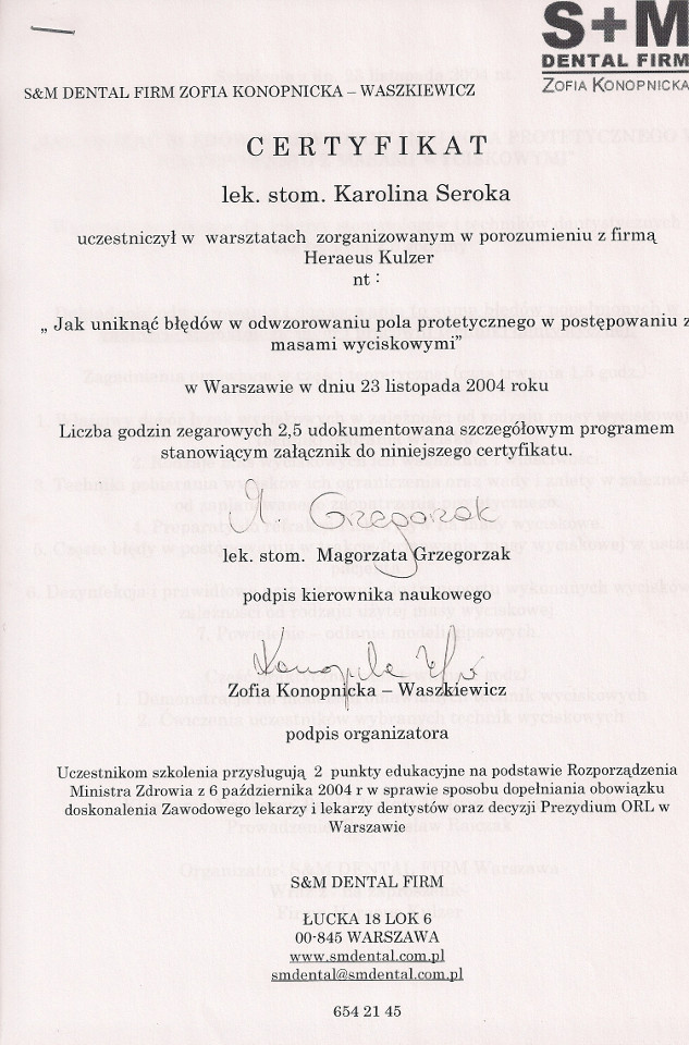 Studia skończyliśmy w 1998 roku na Akademii Medycznej w Gdańsku (dziś to Gdański Uniwersytet Medyczny). Zaraz po tym przenieśliśmy się do Warszawy. Bez zawodowego doświadczenia ciężko było otworzyć własny gabinet stomatologiczny, więc przez pierwsze 5 lat zdobywaliśmy umiejętności w prywatnych gabinetach. Ten czas dał nam możliwość intensywnej nauki w zakresie protetyki i leczenia zachowawczego. Po otwarciu własnej praktyki stomatologicznej nie zaprzestaliśmy nauki. Do dziś jeździmy na szkolenia zawodowe i rozwijamy nasze umiejętności, dzięki czemu możemy korzystać z najnowszych technologii podczas leczenia. Dziś śmiało możemy powiedzieć, że zęby nie mają przed nami żadnych tajemnic.