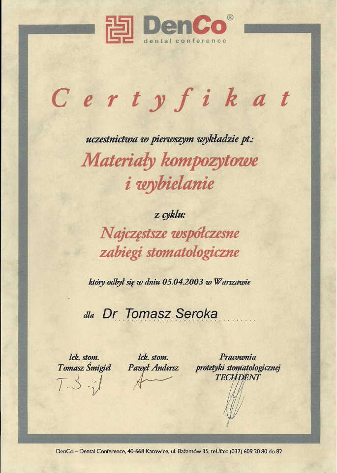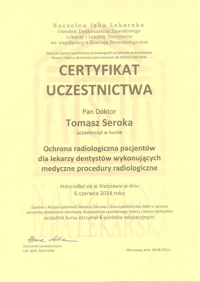 "Rzetelny i uczciwy stomatolog... chodzę do Pana Tomasza już 5 lat z całą rodzinką i muszę stwierdzić że to genialny lekarz. Ponadto gabinet jest super wyposażony w najnowocześniejsze cudeńka do zabiegów stomatologicznych. Polecam!!!!"