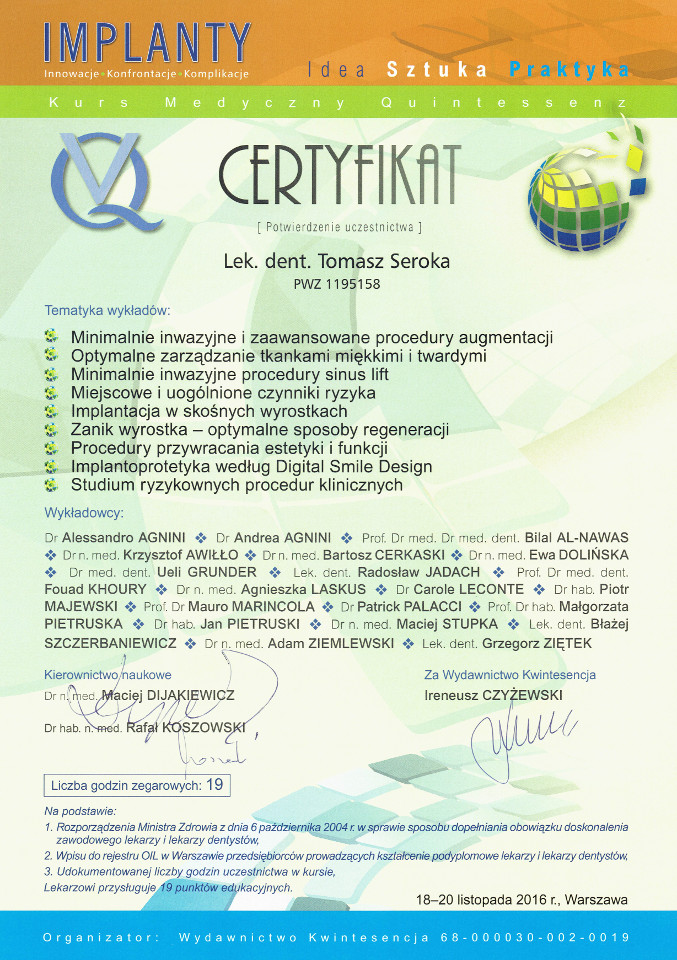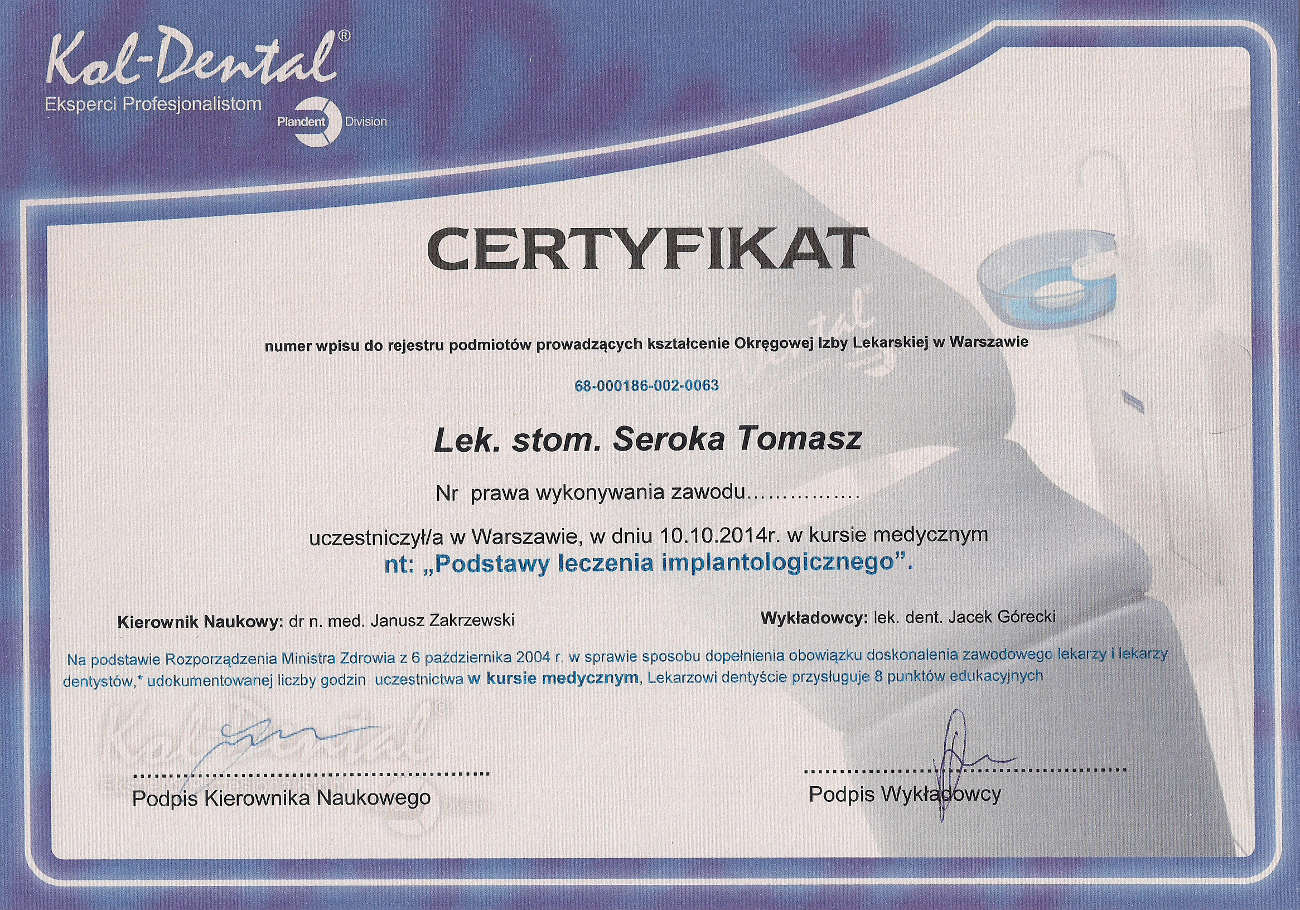| implant - koszt całkowity w zależności od systemu | 4800-8000 |
